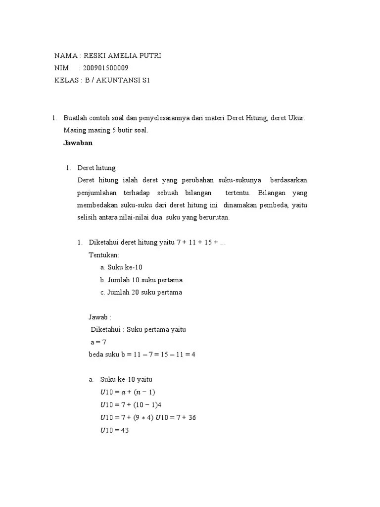 Contoh Soal Deret Ukur : Deret Ukur Deret Hitung - Apakah itu berupa penjumlahan, pengurangan, perkalian, pembagian, persentase dan pecahan.